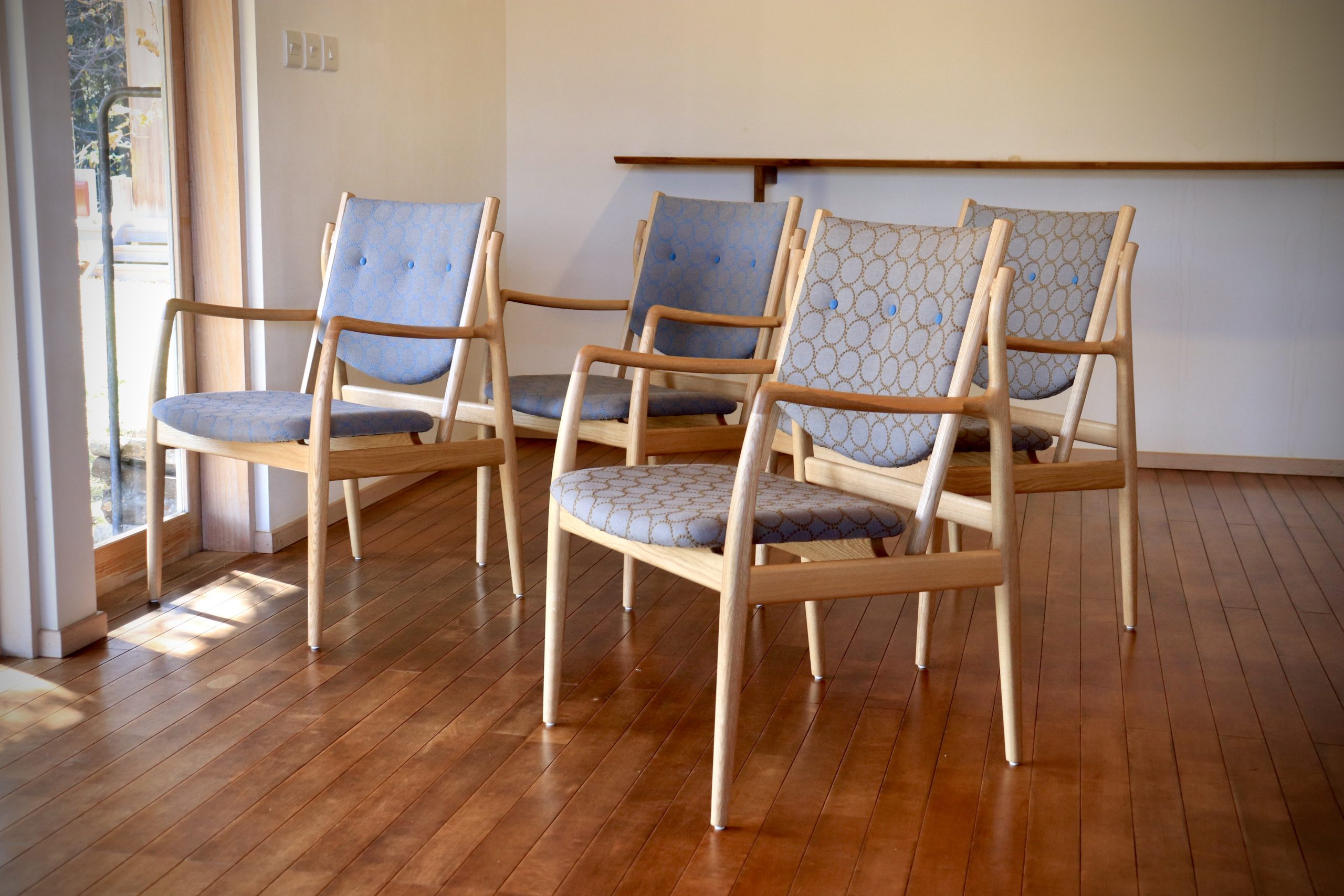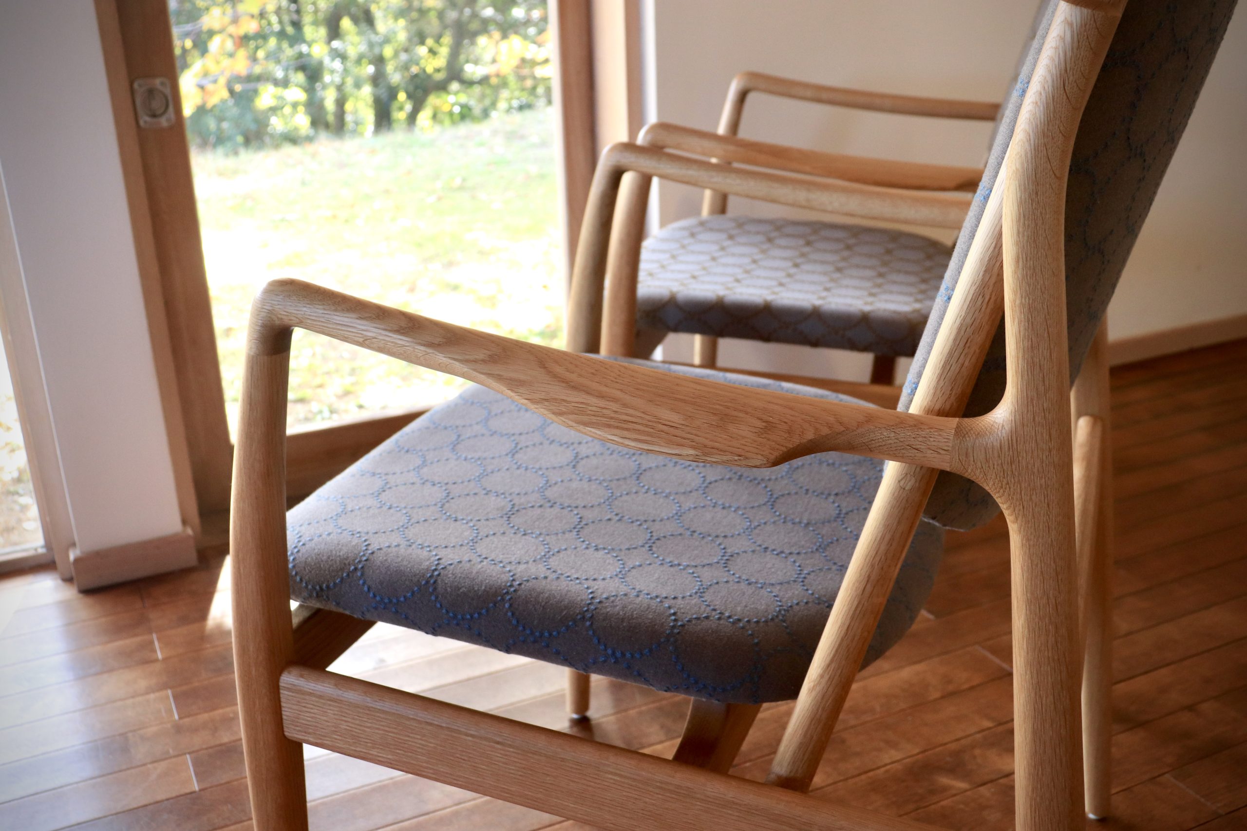 椅子の張り地はminä perhonen の tambourine/タンバリンを2色、革張りとはまた違った個性が空間に生まれました
