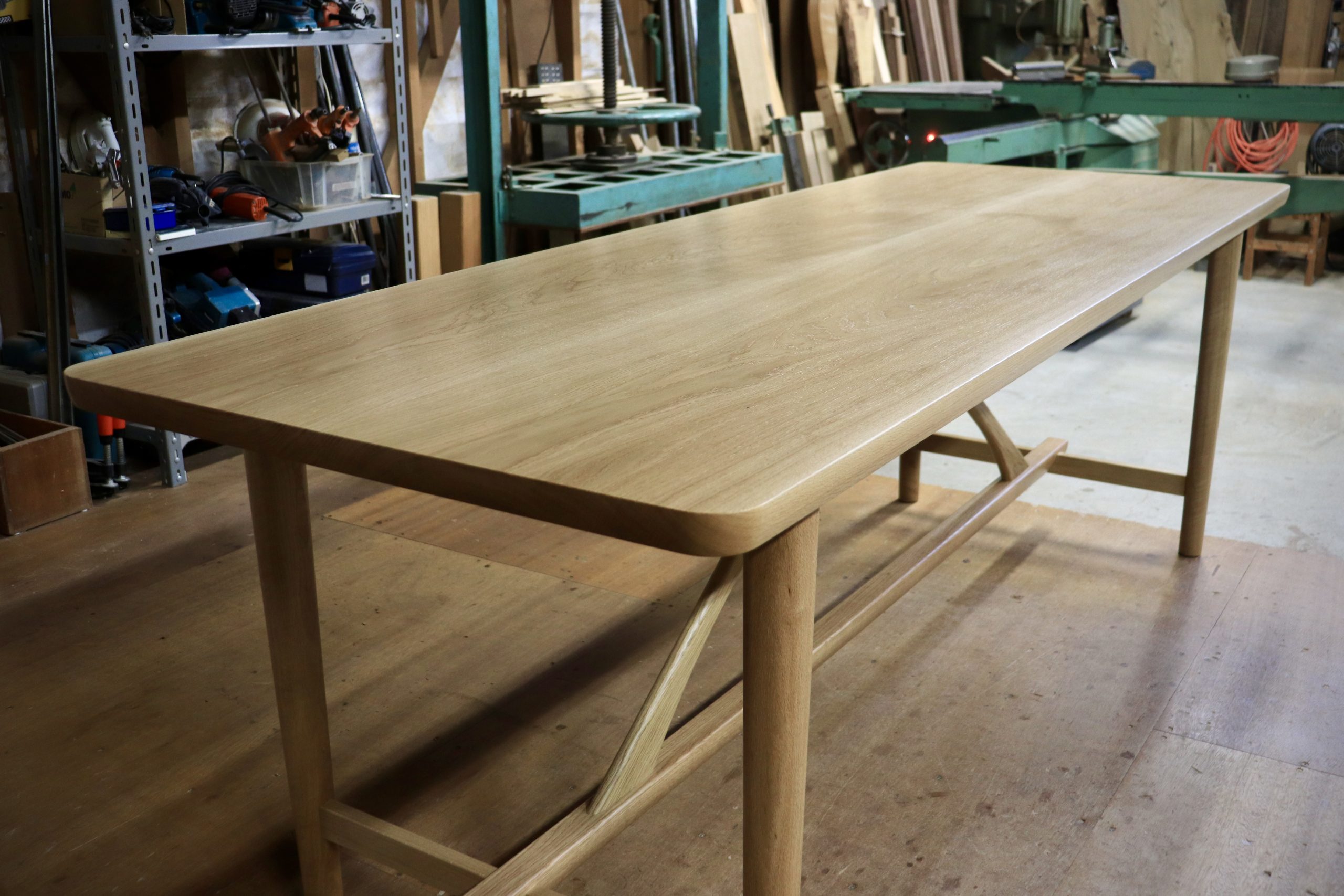 ダイニングテーブル : 2,200 × 800 × 730 / ナラ材 オイル塗装仕上