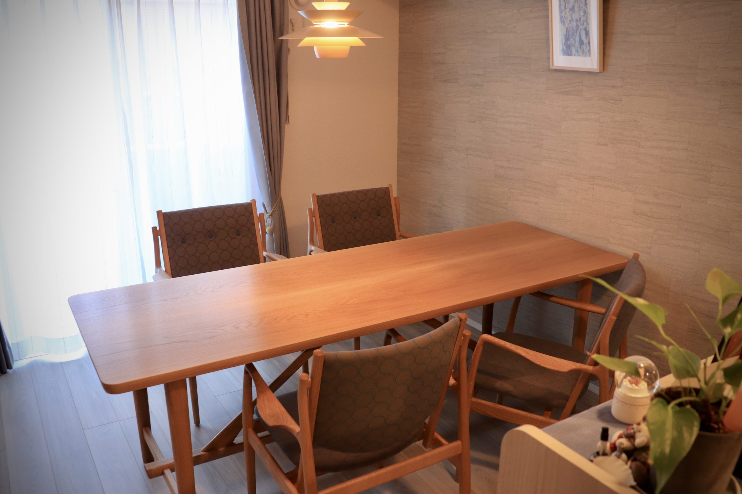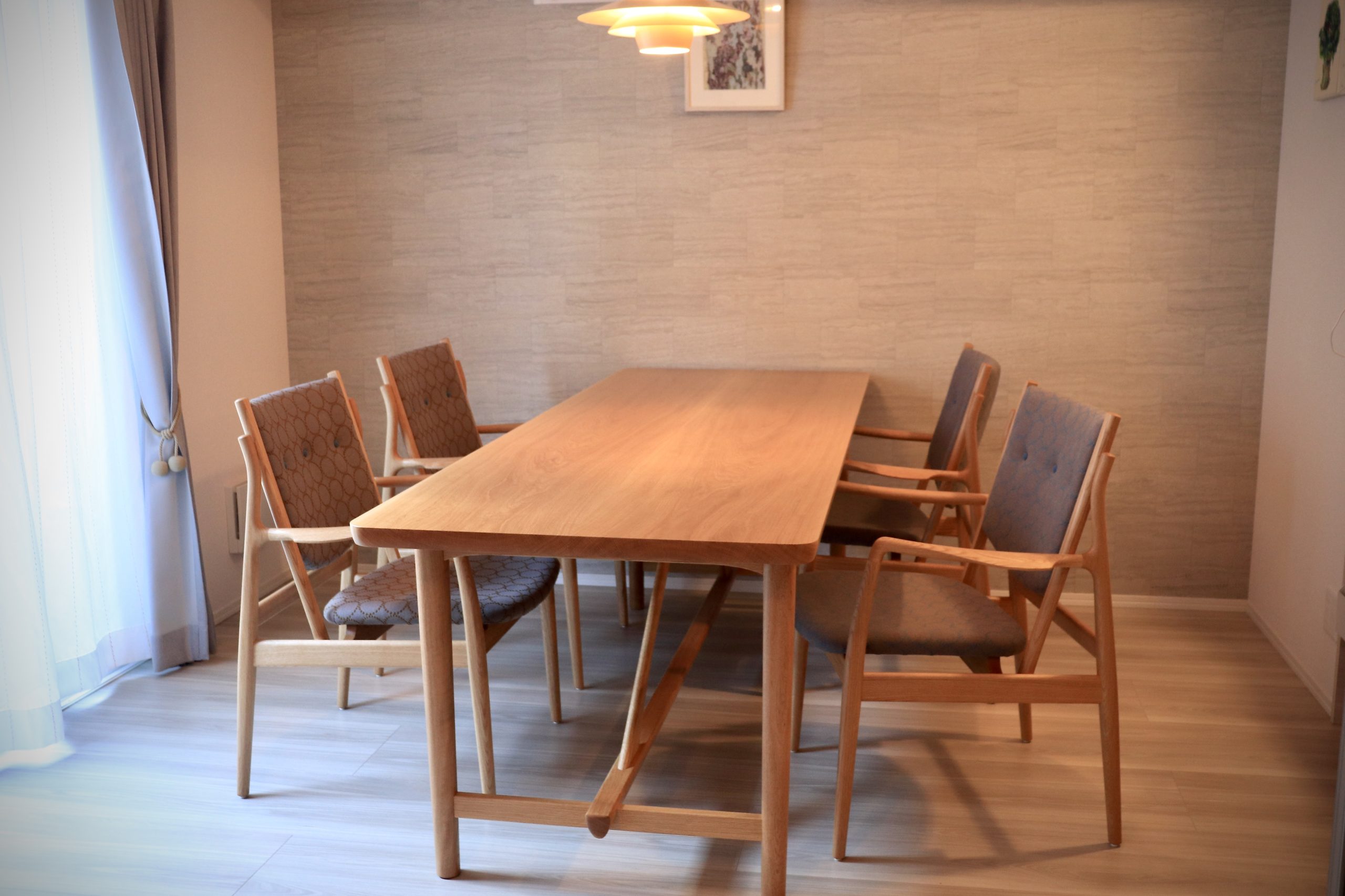長さのある大きなテーブルにゆったりと椅子が4脚おさまりました